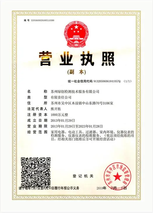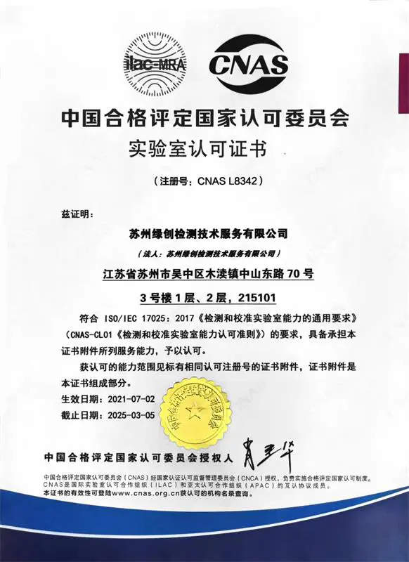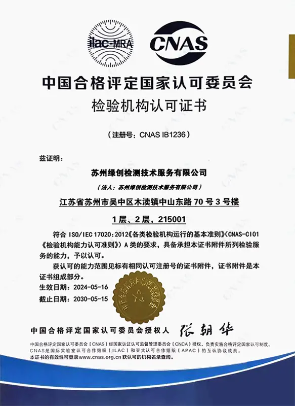 苏州绿创检测技术服务有限公司,成立于2013年1月,是一家第三方检测检验公司(实验室认可:CNAS L8342、检验机构认可:CNAS IB1236),专注为社会大众提供地面清洁、空气净化、空气处理、仪表校准和锂电池运输等测试、校准和检验服务。